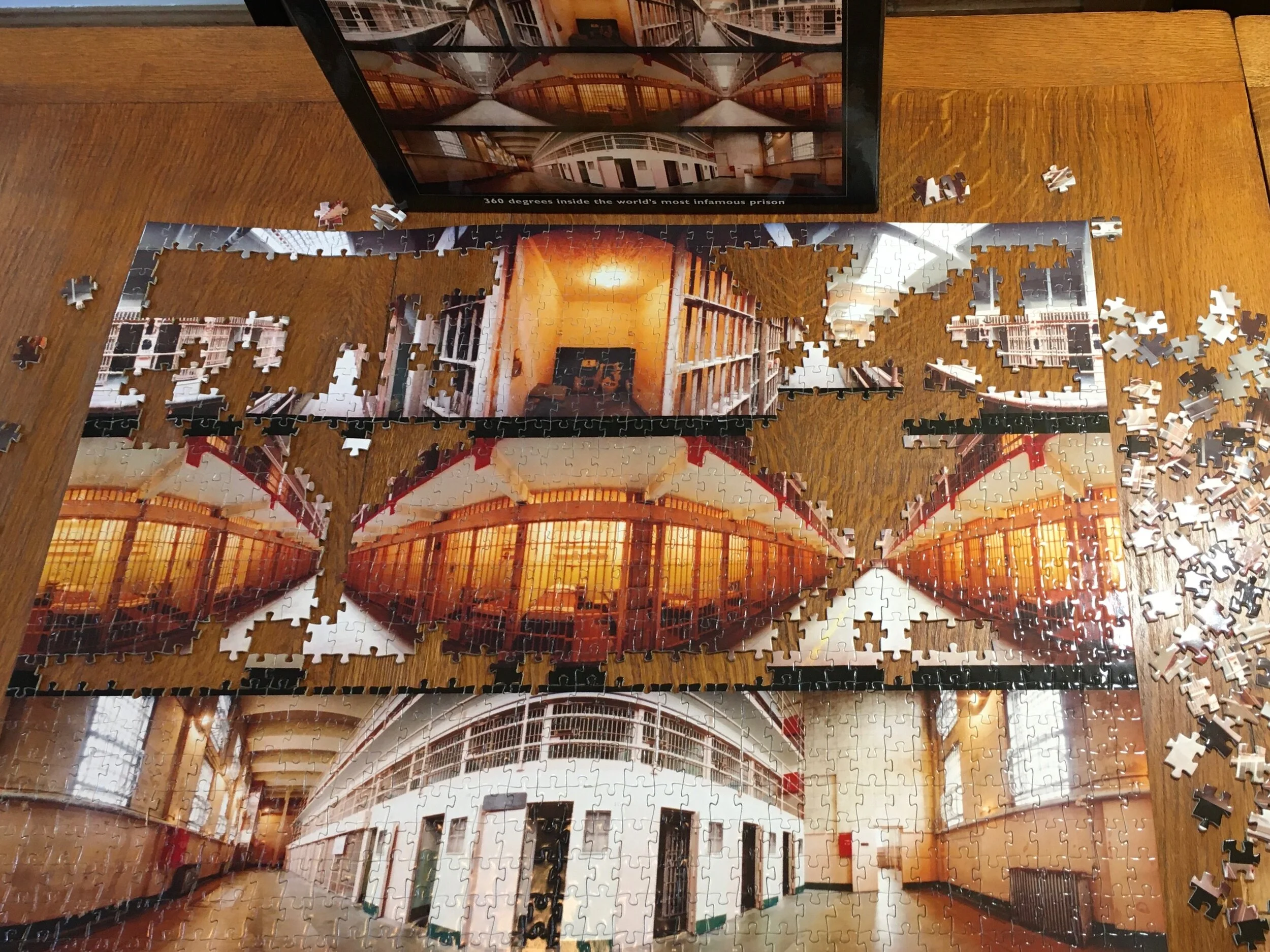 If you are a regular reader, you know I’ve been piecing together this horrifying puzzle of the inside of Alcatraz for the last two months. It was what I could get when I needed a puzzle in the worst way. Since then, I’ve been gifted and offered several puzzles from kind friends, and I KNOW FOR A FACT that they won’t kill me like this one nearly did.